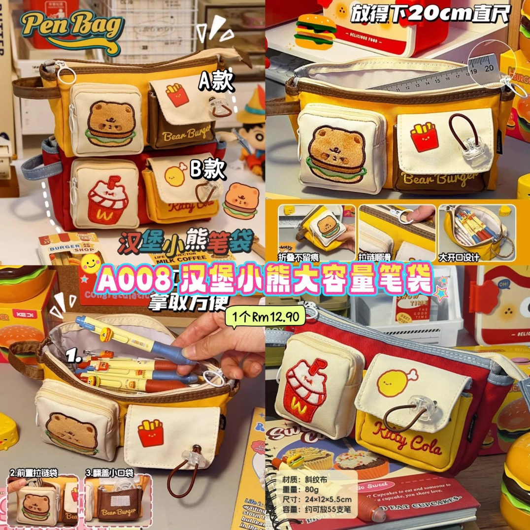 A008 汉堡小熊大容量笔袋(如款式缺货随机发)