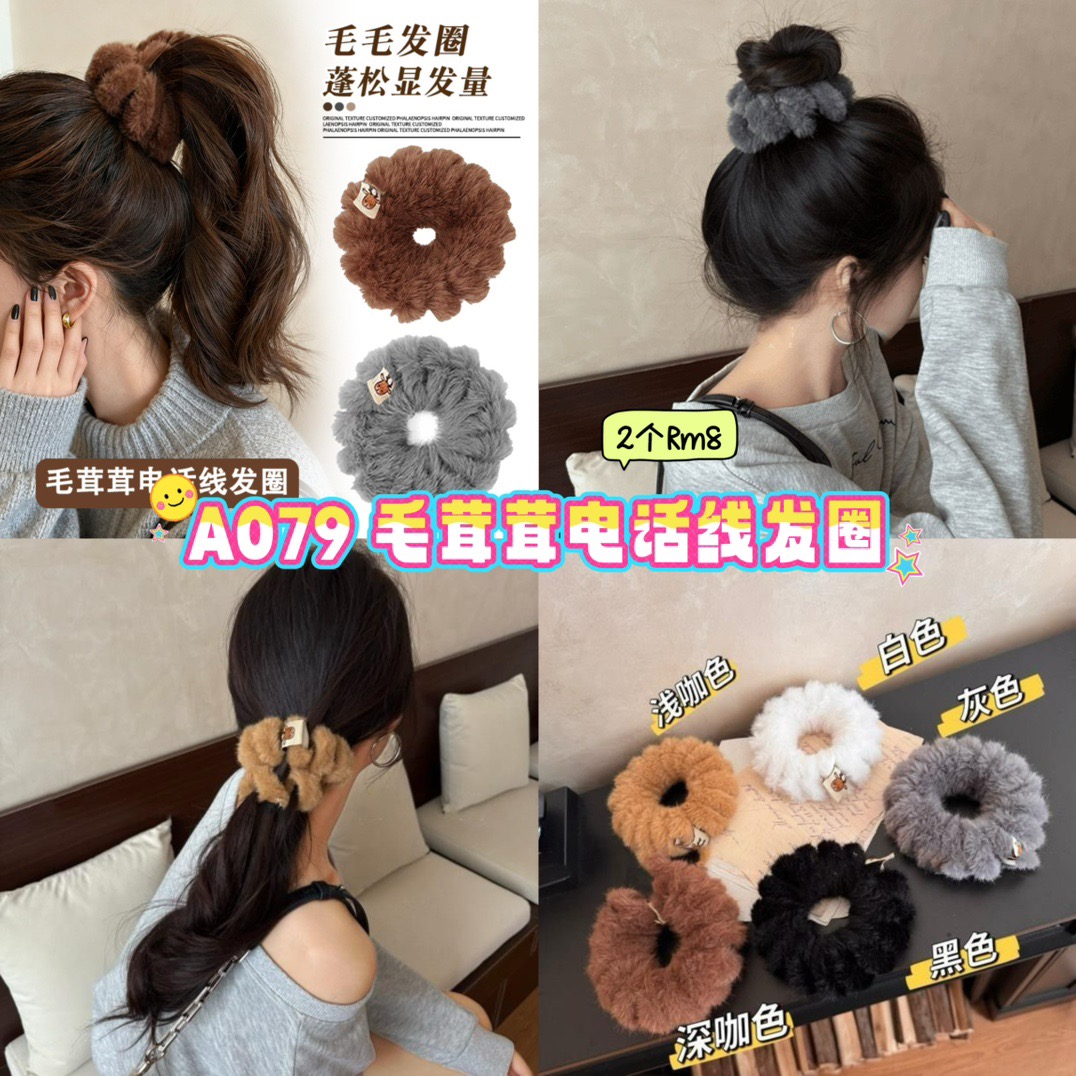 A079 毛茸茸电话线发圈 (2个)*如颜色缺货随机发
