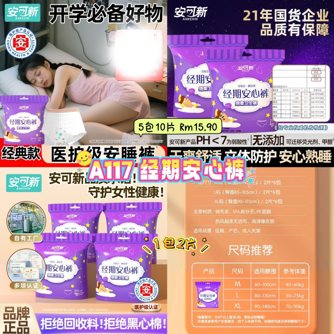 A117 经期安心裤 (5包同码)