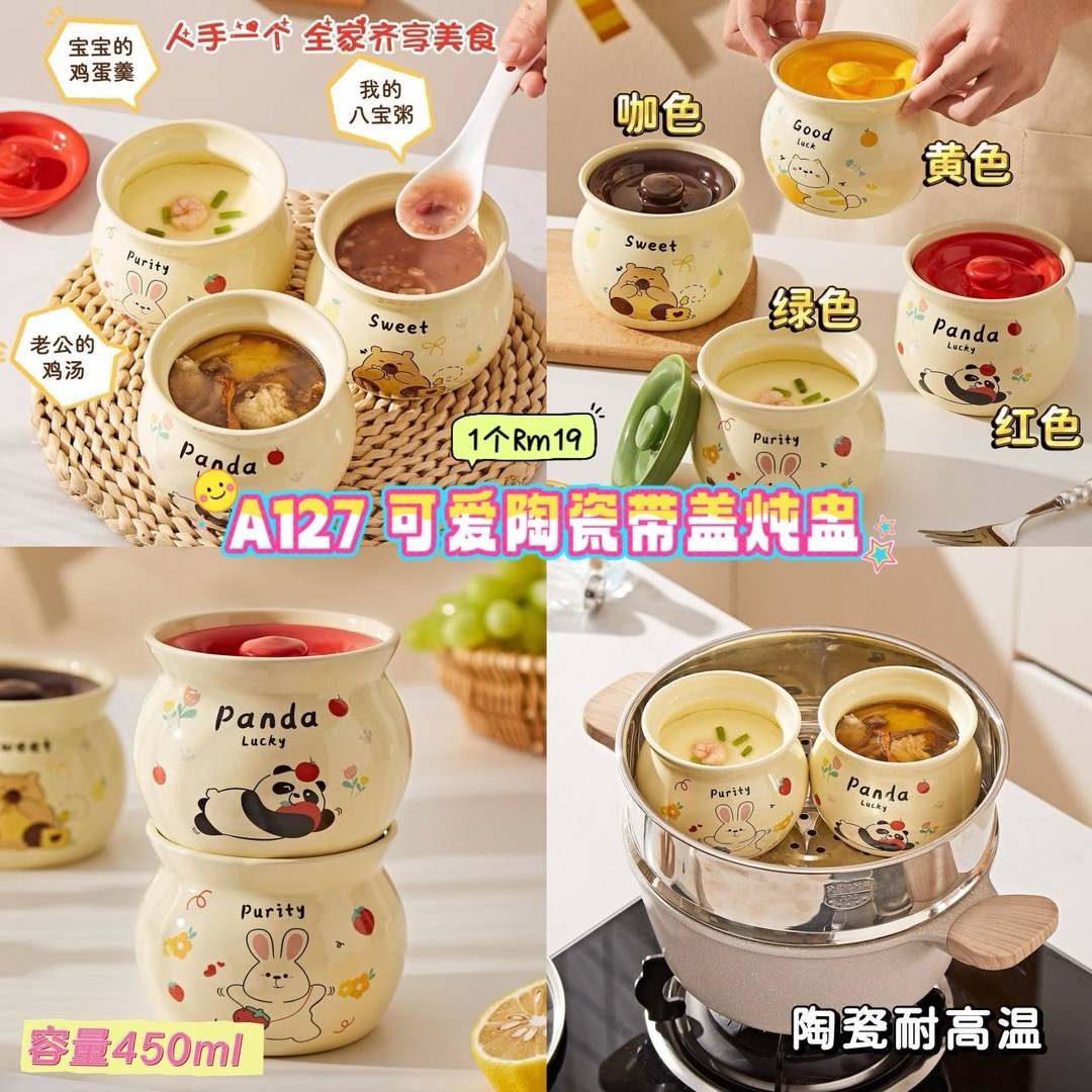 A127 可爱陶瓷带盖炖盅