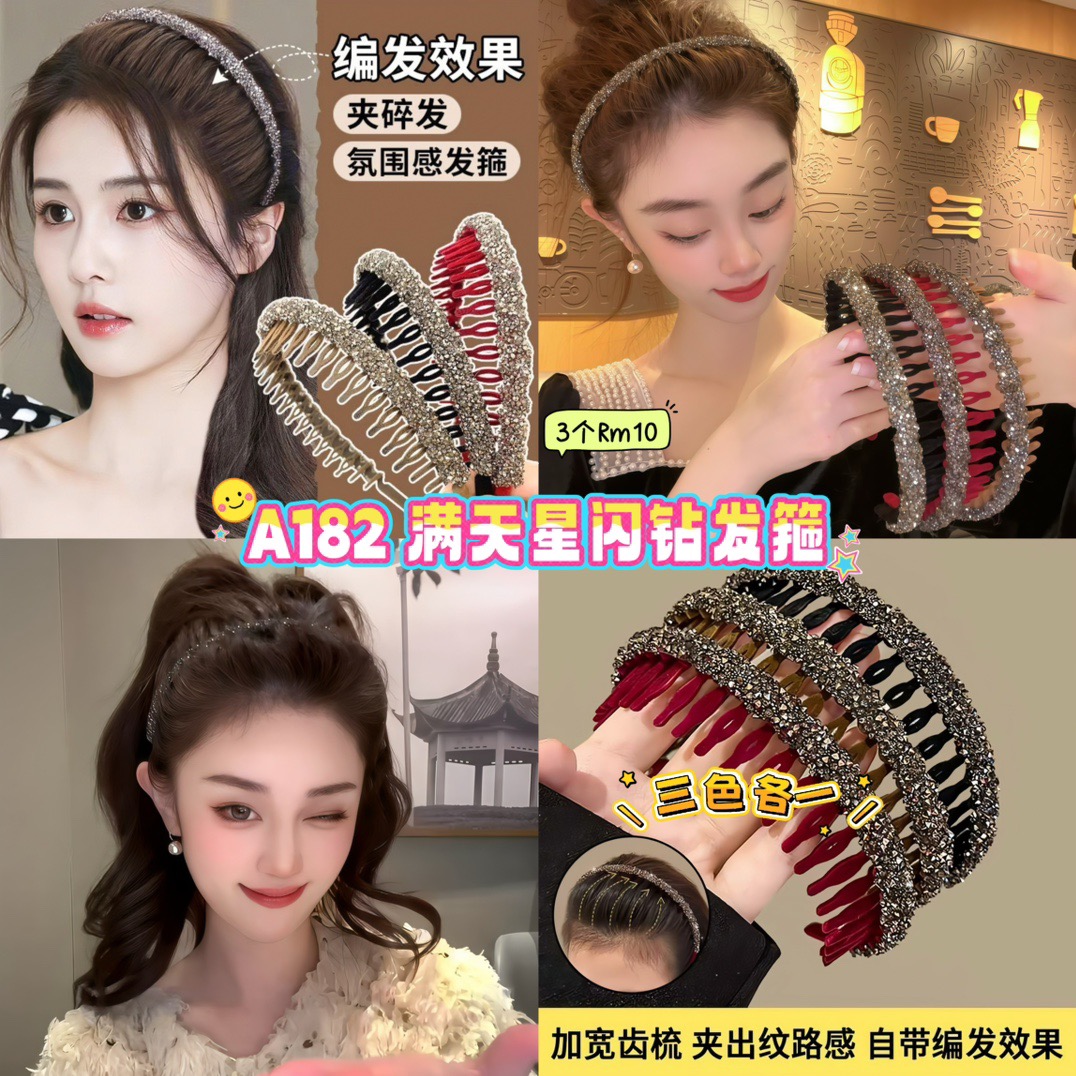 A182 满天星水钻发箍 (3色各1)