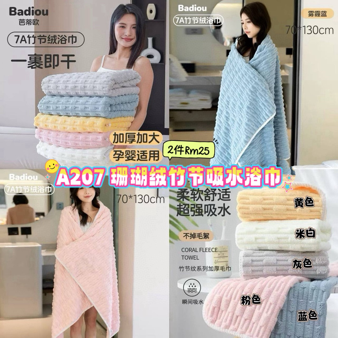 A207 珊瑚绒竹节吸水浴巾 (2件)