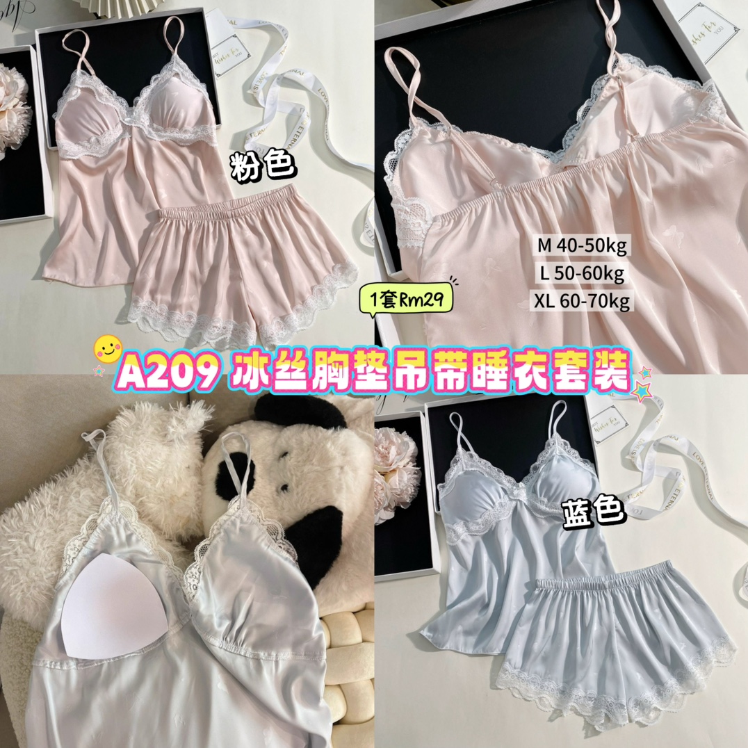 Be the first to review “A209 冰丝胸垫吊带睡衣套装” Cancel reply