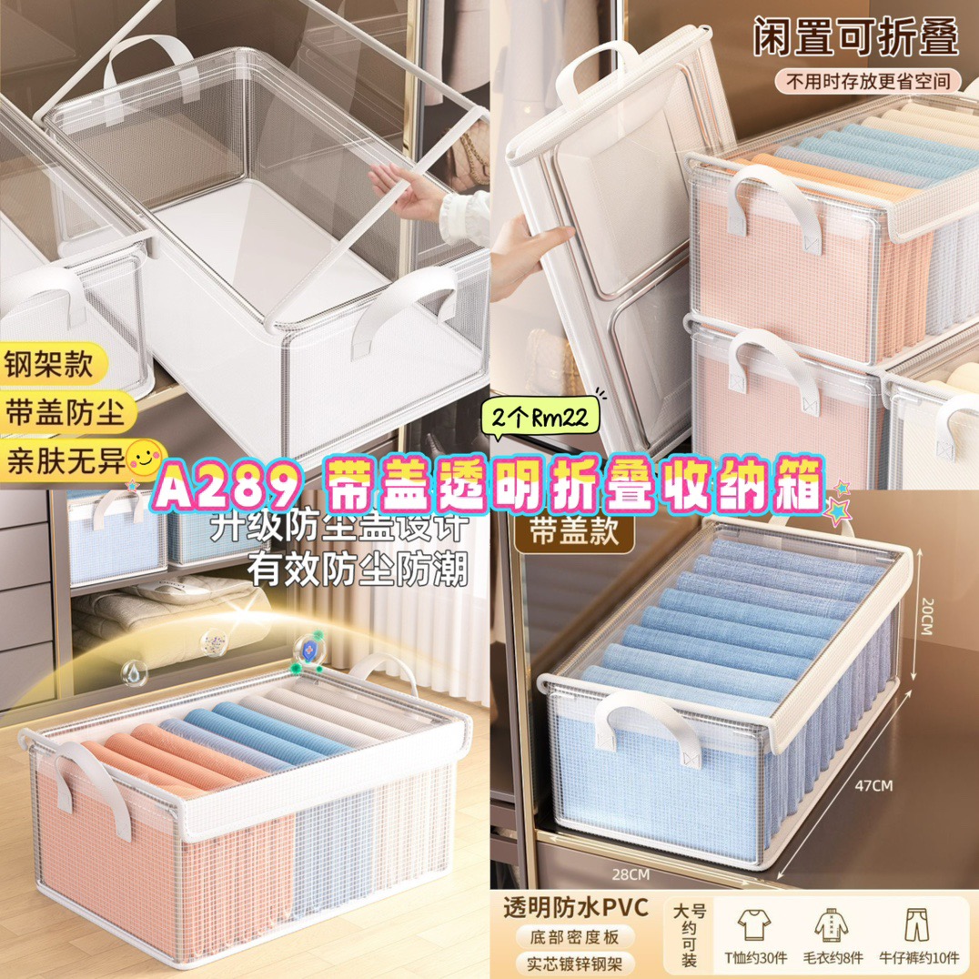 A289 带盖透明折叠收纳箱 (2个)