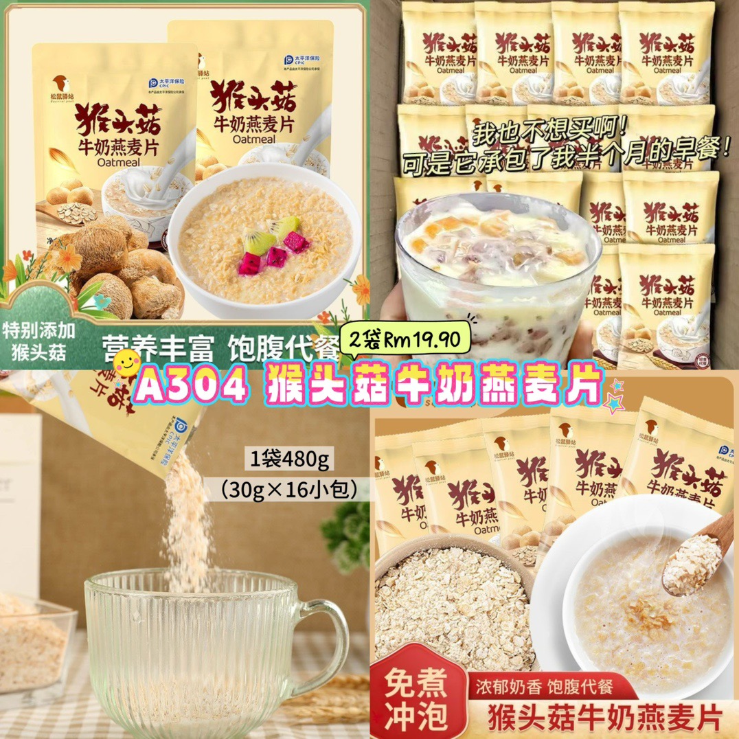 A304 猴头菇牛奶燕麦片 (2袋)