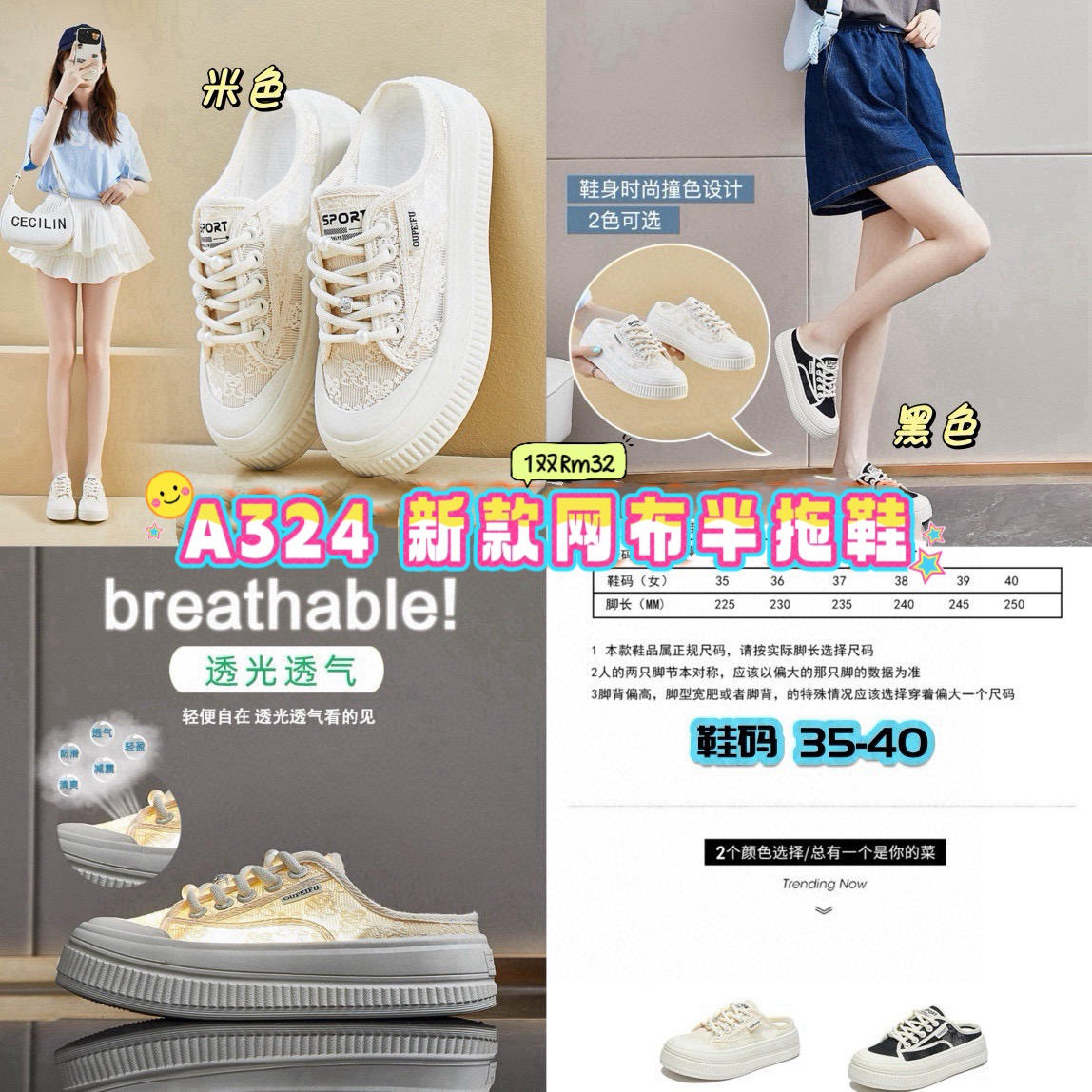 新款蕾丝网布半拖鞋,透气舒适,好看好穿不累脚💖