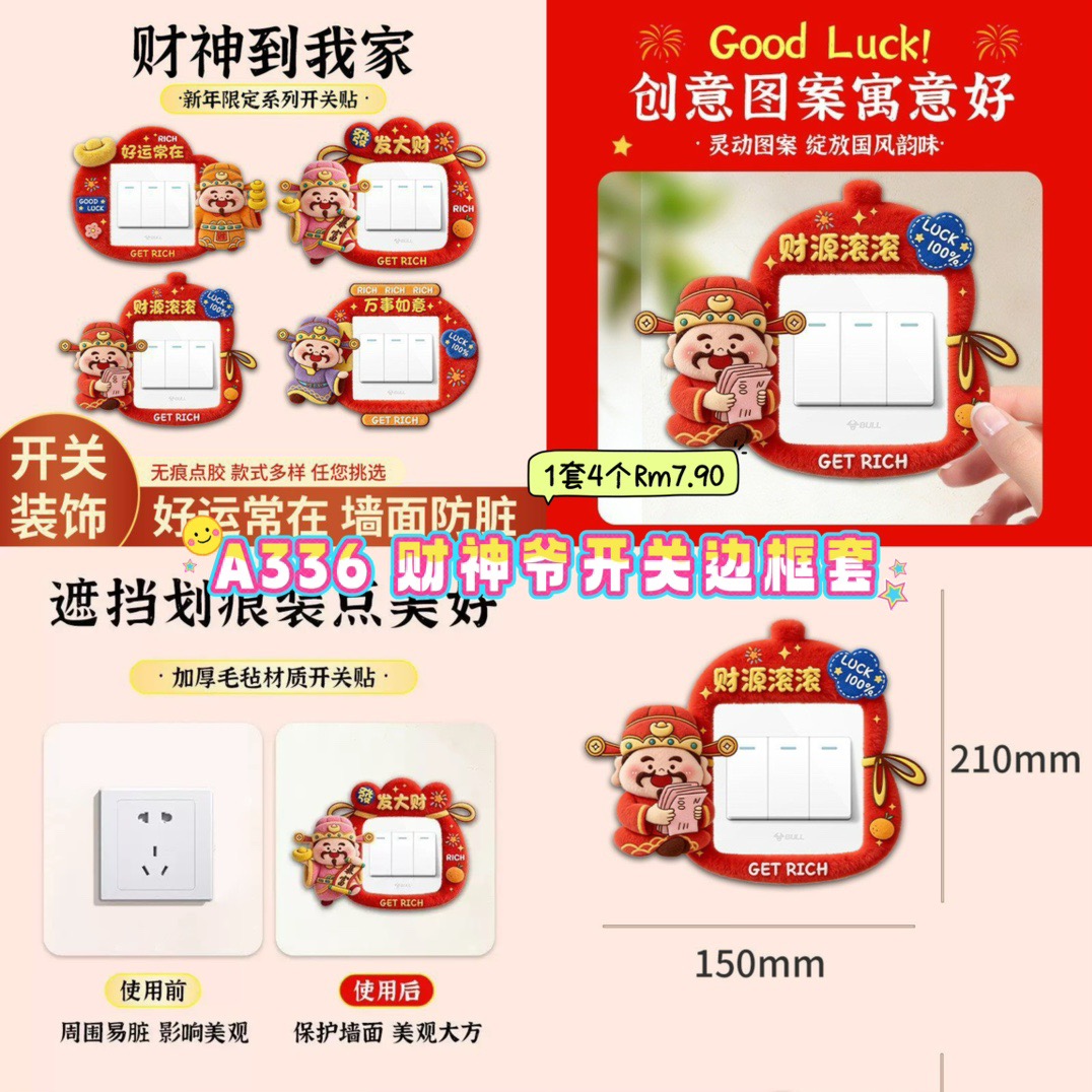 A336 财神爷开关边框套 (4款各1)