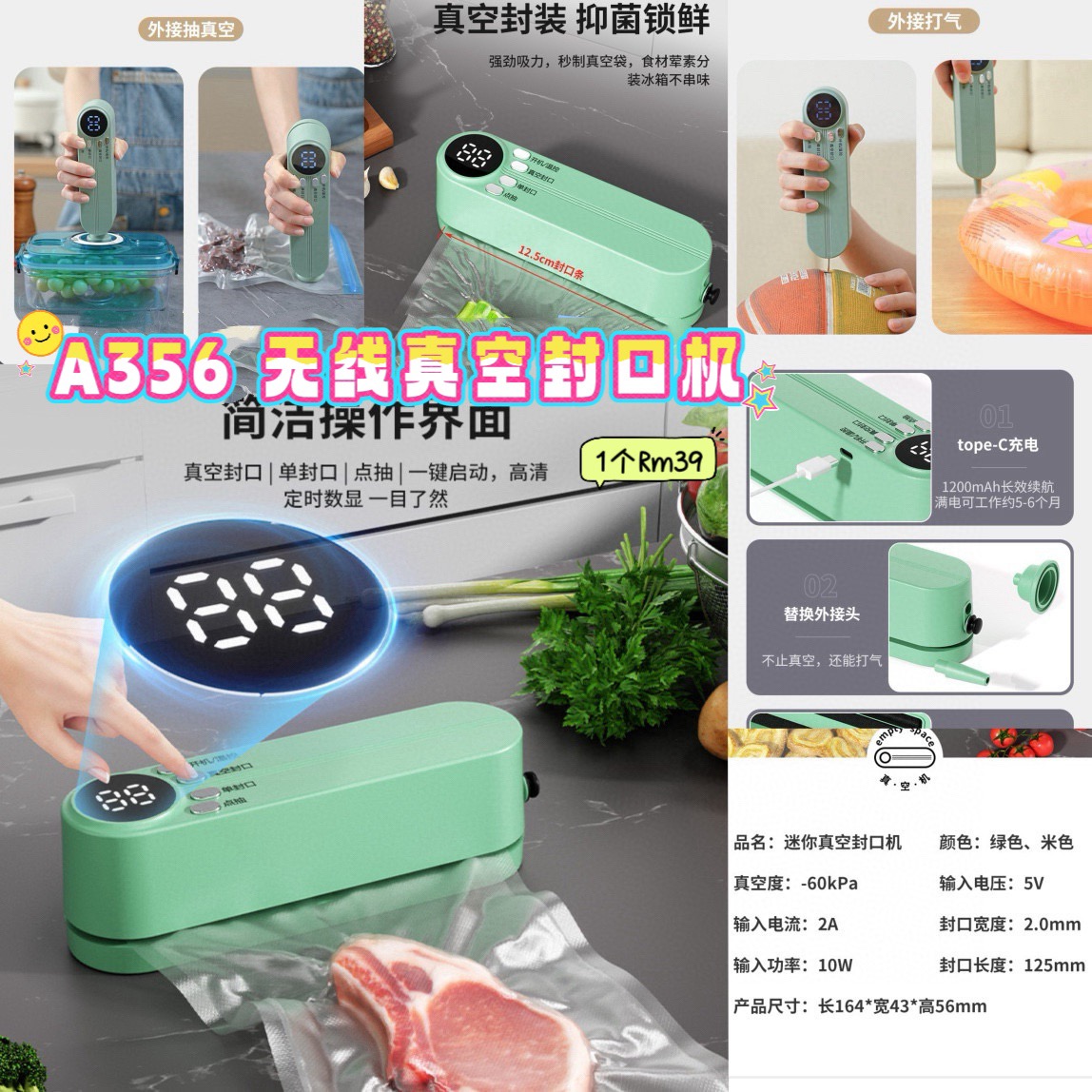 无线设计,摆脱线缆束缚,充电后随时随地能用。小巧便携,不管是家用还是外出野餐,都超方便。一键全自动真空封口,轻松隔绝空气,延长食物保质期,再也不担心食物浪费。还有充气功能!🌟