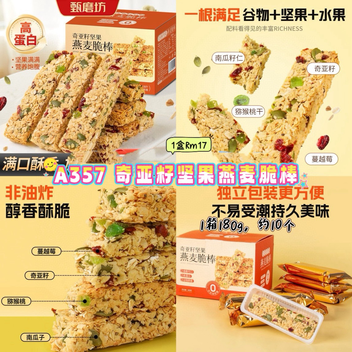 A357 奇亚籽坚果燕麦脆棒(1盒约10个,180g)