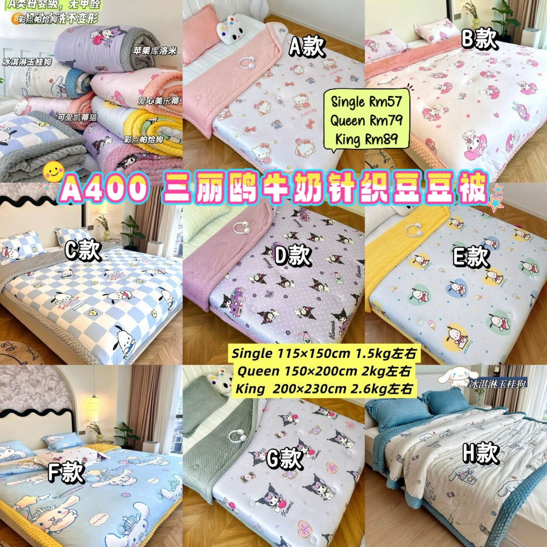 A400 三丽鸥牛奶针织棉豆豆被 **QUEEN