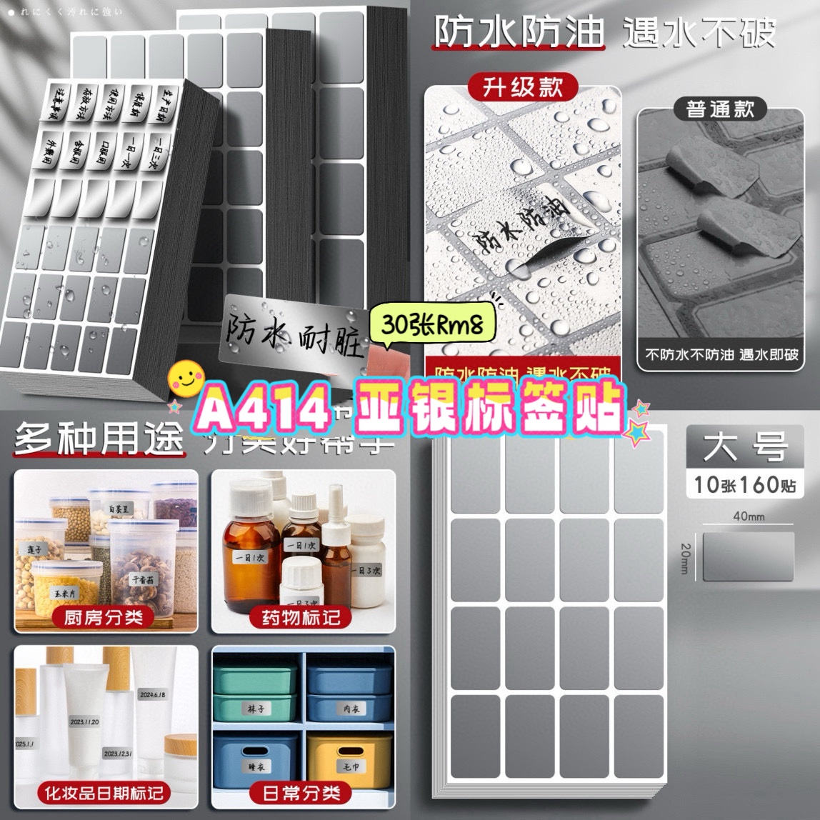亚银标签贴超全能!能当姓名贴、食品药品留样标签,厨房收纳标记也好用,固定资产管理也在行~💖一张16贴