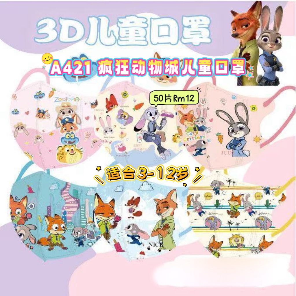 A421 疯狂动物城儿童三层口罩 (50片混款)