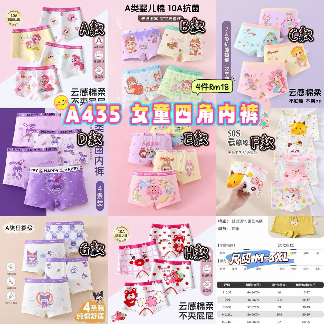 A435 女童四角内裤 (4款各1) **G