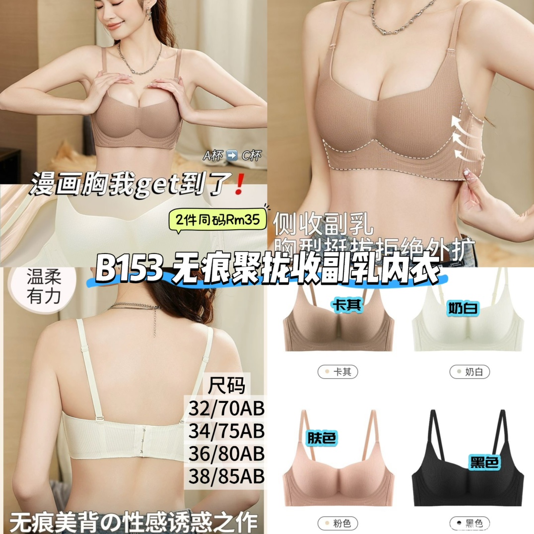 B153 无痕聚拢收副乳内衣 (2件同码) *38码