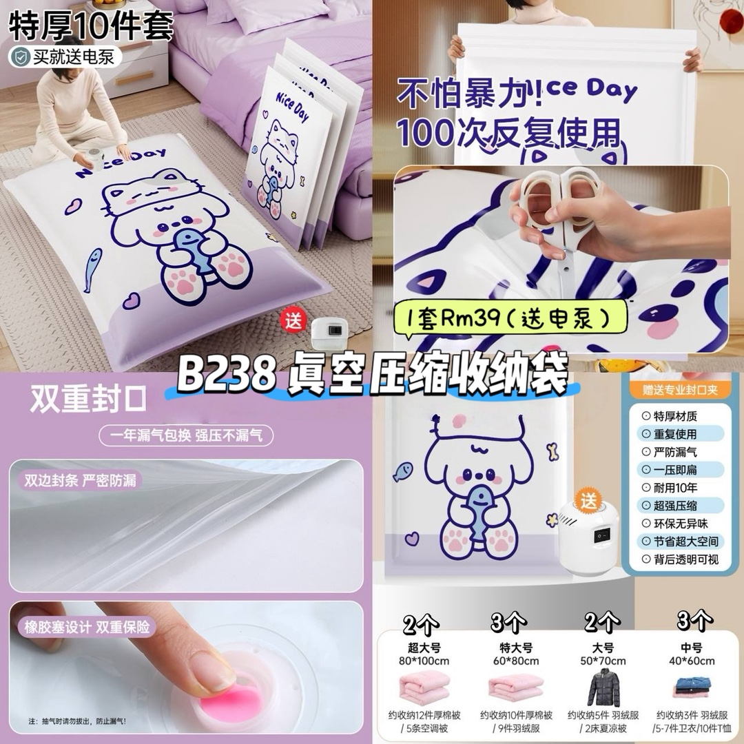 B238 真空压缩收纳袋 (1套=中3+大2+特大3+超大2+送电泵)