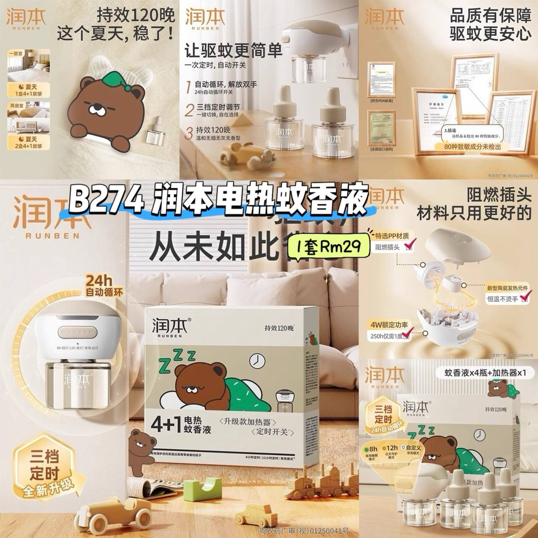 B274 润本电热蚊香液 (1套)