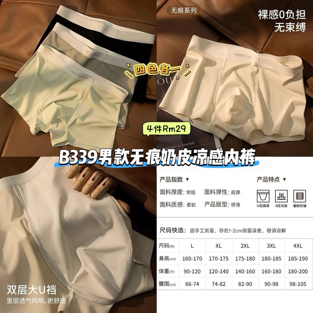 B339 男款无痕奶皮凉感内裤 (4色各1)
