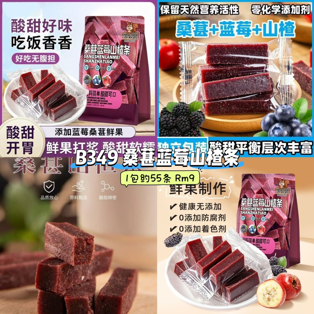 B349 桑葚蓝莓山楂条 (1包约55条)