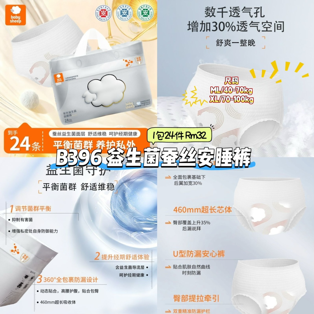 B396 益生菌蚕丝安睡裤 (1包24件)