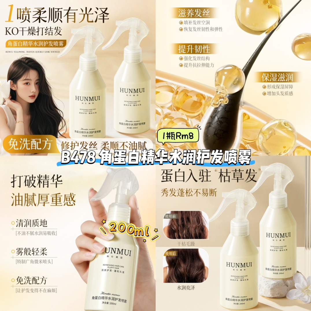 B478 角蛋白精华水润护发喷雾