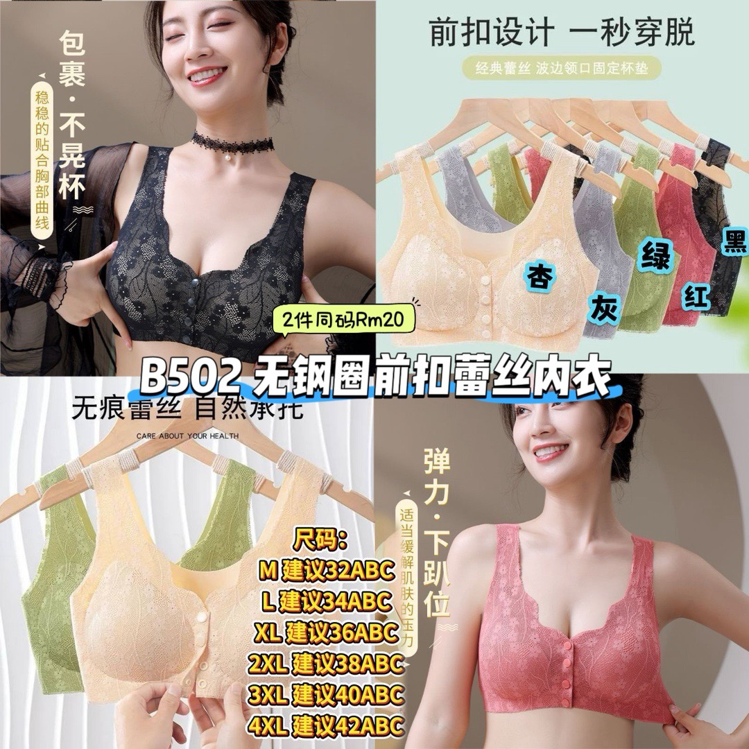 B502无钢圈前扣蕾丝内衣 (2件同码) **L码