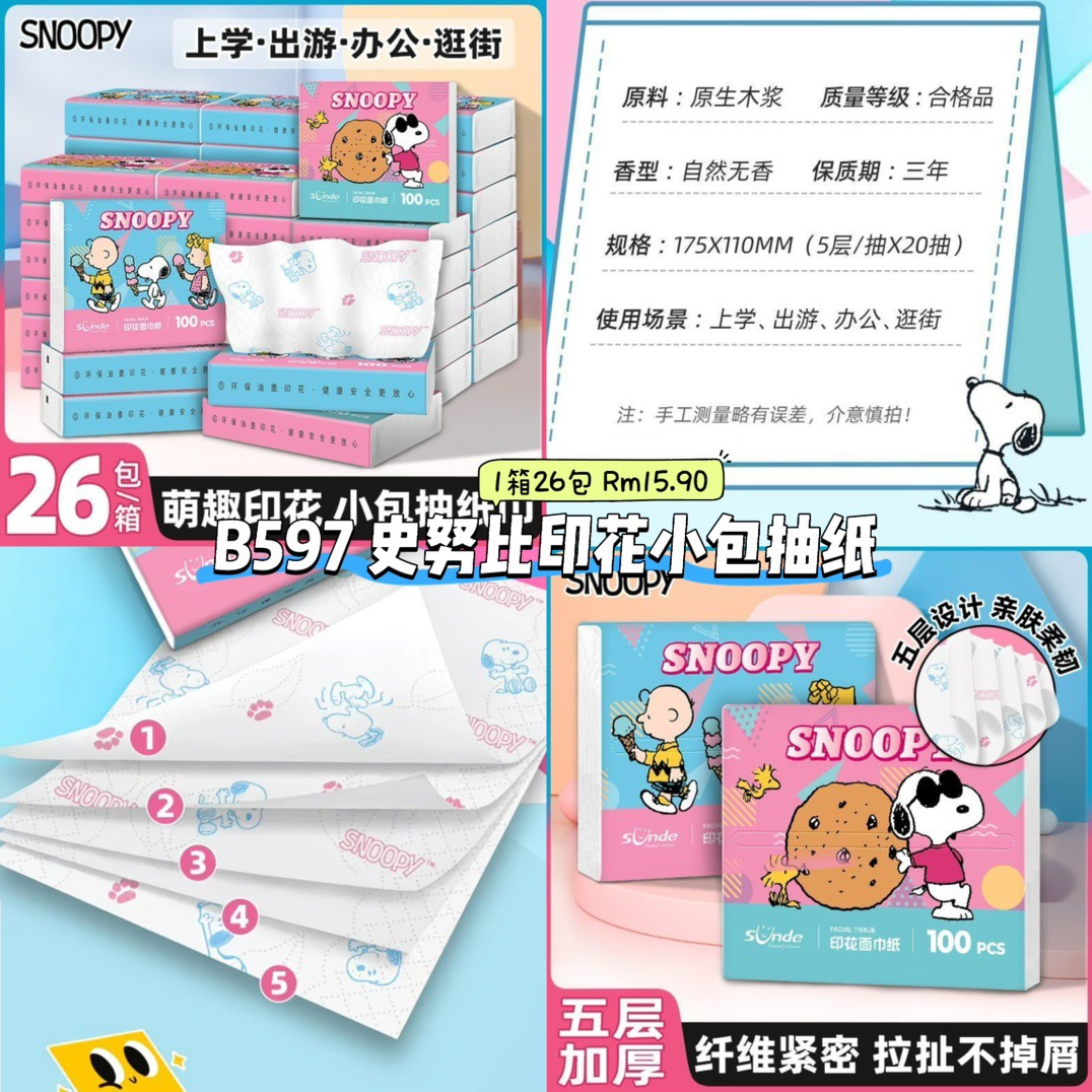 B597 史努比印花小包抽纸 (1箱26包)