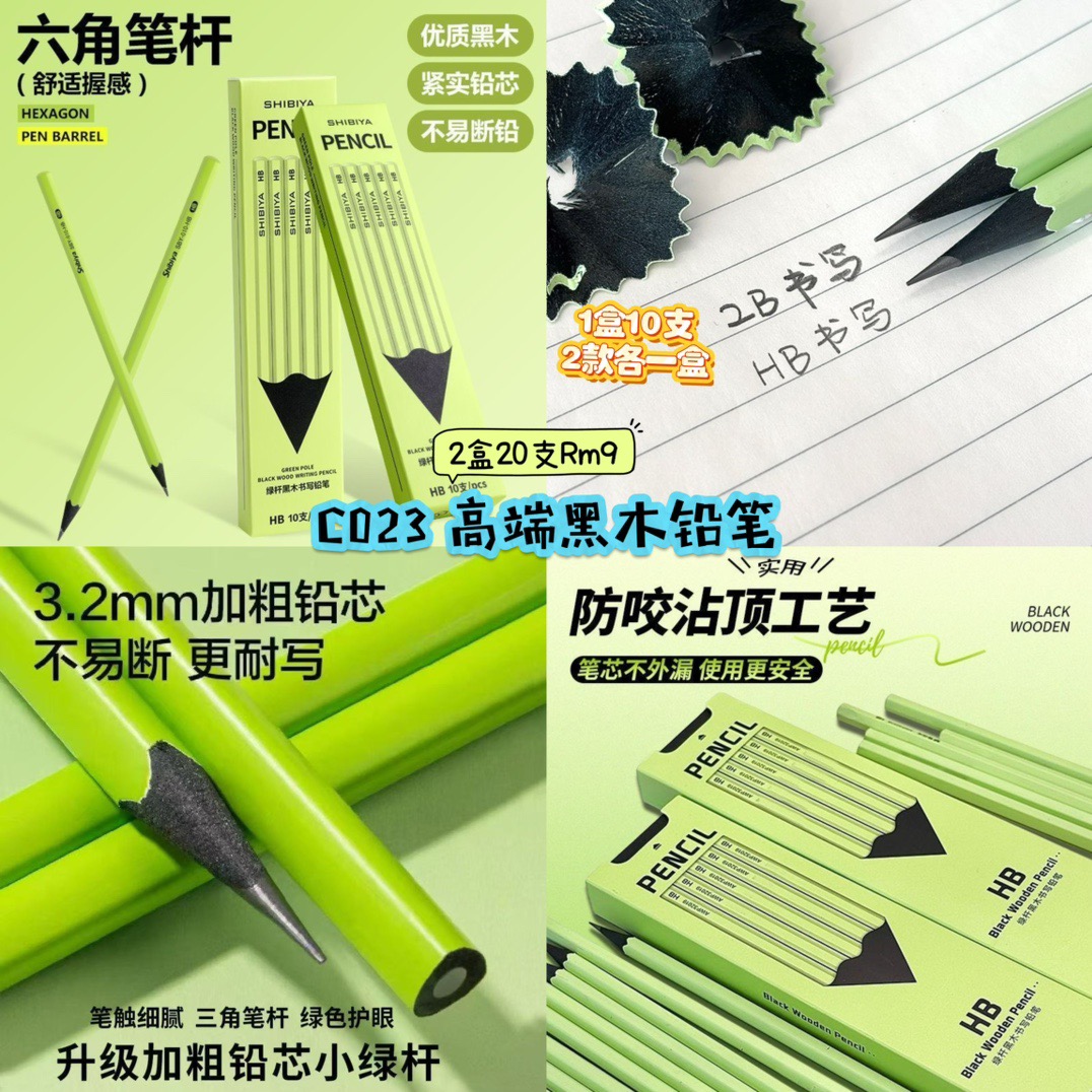 C023 高端黑木铅笔 (2盒=HB+2B)