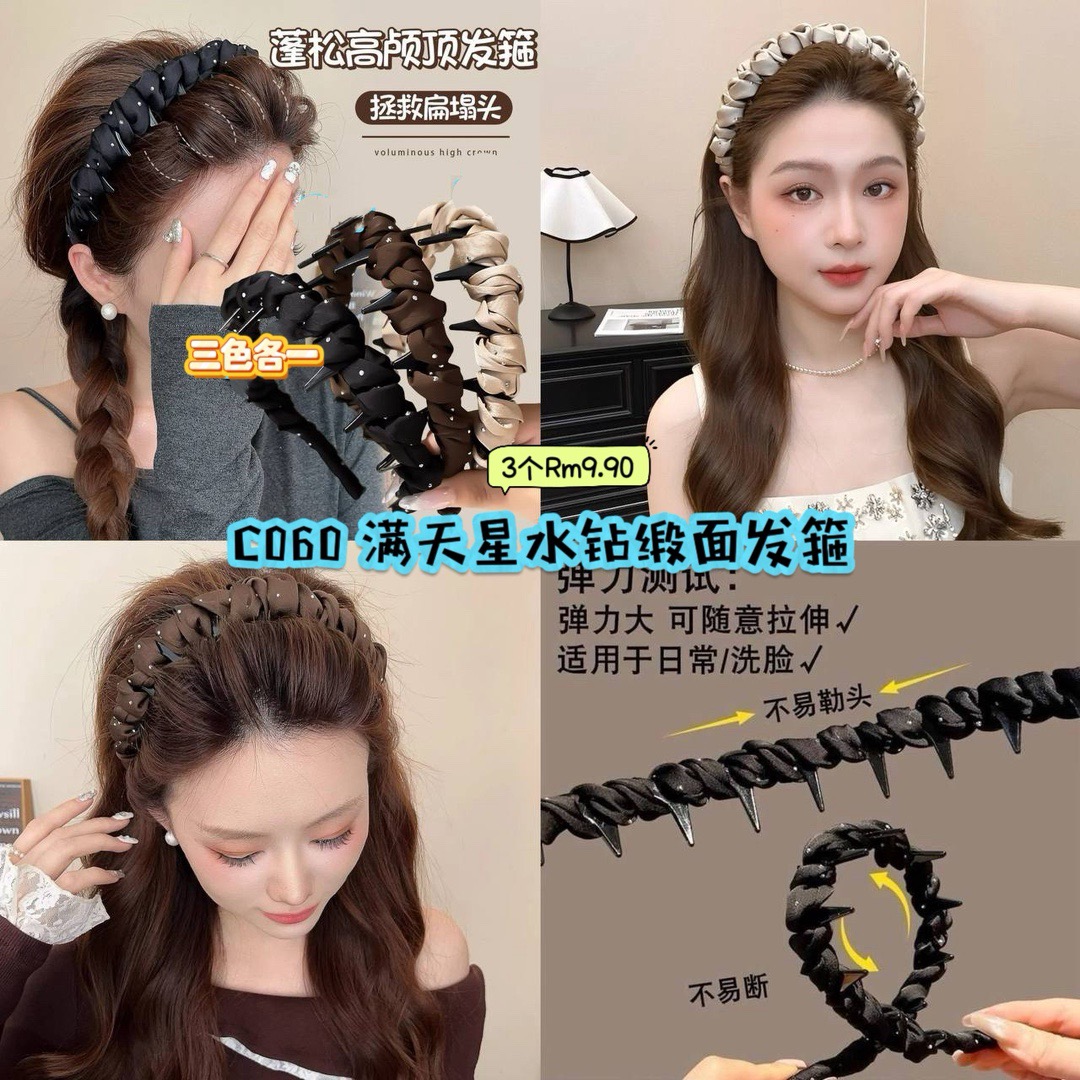 C060 满天星水钻缎面发箍 (3色各1)