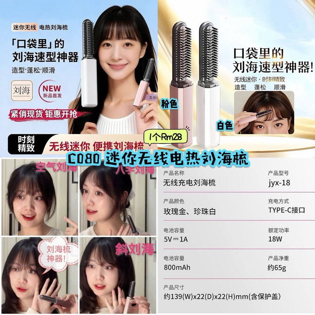 C080 迷你无线电热刘海梳(如颜色缺货随机发)