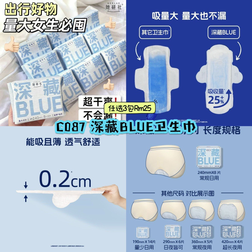 C087 深藏BLUE卫生巾 (任选3包) **36cm – 另外2款里面选择