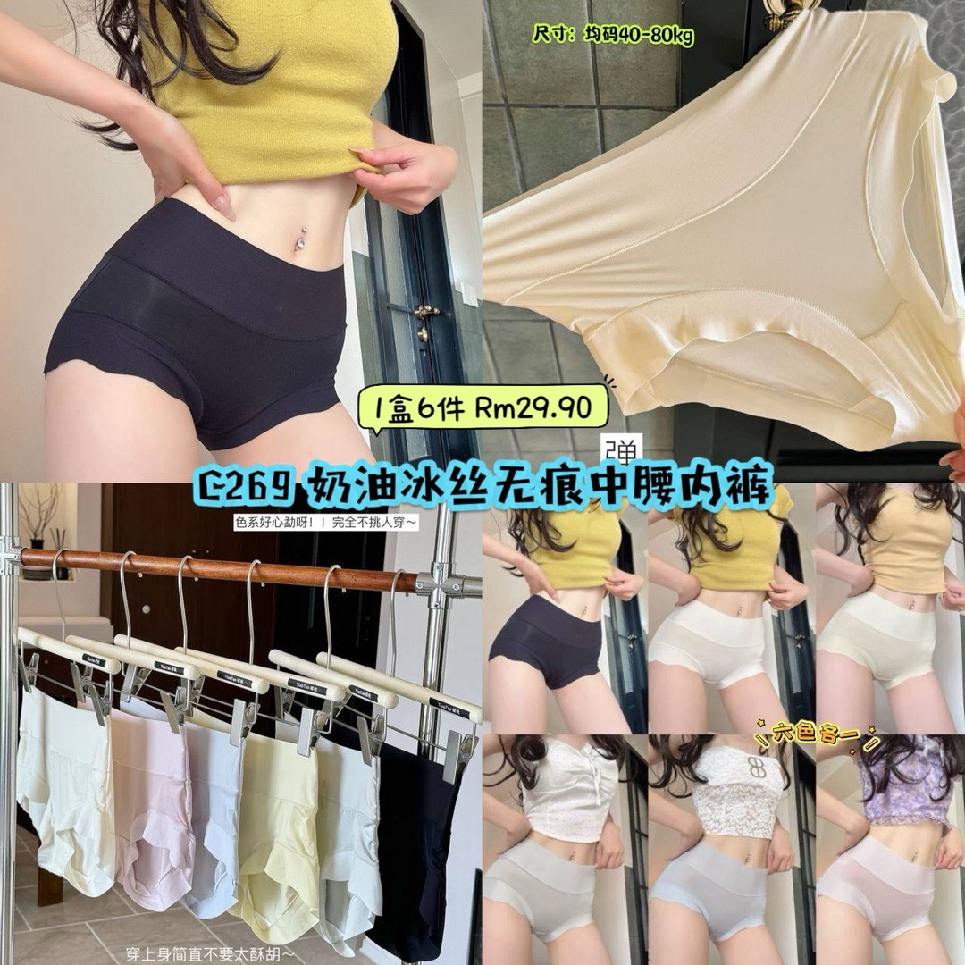 C269 奶油冰丝无痕中腰内裤 (1盒6件)