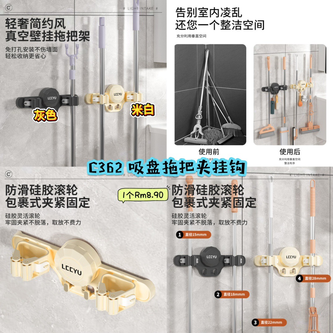 C362 吸盘拖把夹挂钩