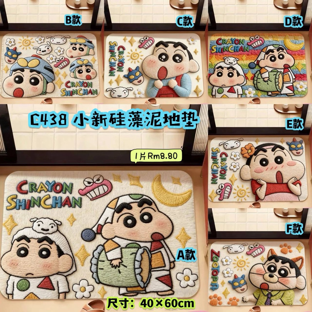 蜡笔小新硅藻泥地垫✨可爱爆棚,浴室吸水超干爽!6款萌趣印花💓防滑耐脏易打理,卫生间颜值UP