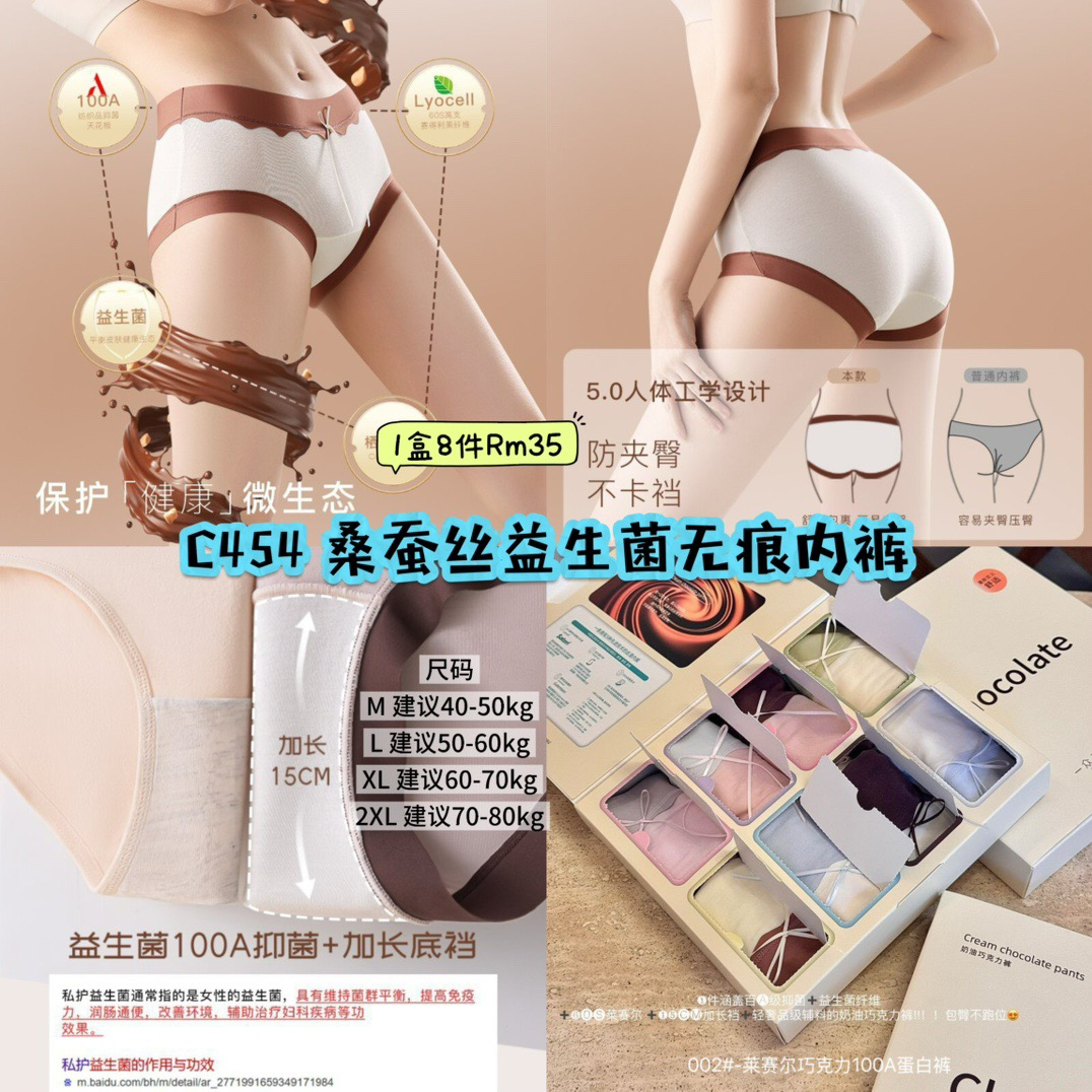 C454 桑蚕丝益生菌无痕内裤 (1盒8件)