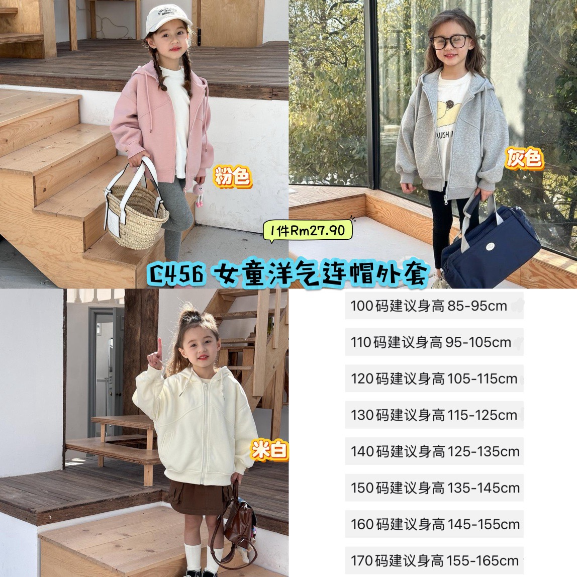 宝妈们必入!Rm27.90女童连帽外套上新✨任意搭都好看!宽松版型不束缚,100-170码全尺码覆盖~春秋单穿、冬季内搭都可,闭眼冲!