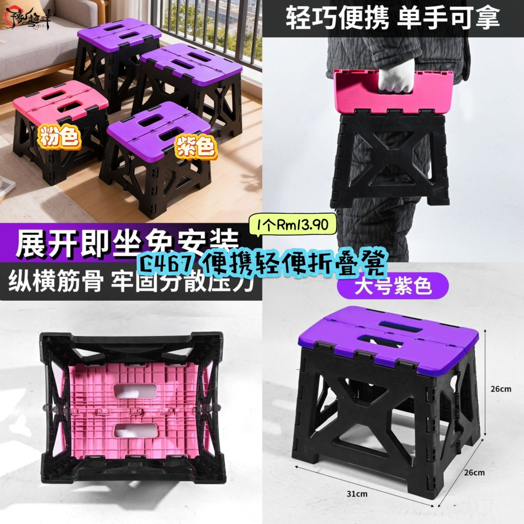 家人们!Rm13.90折叠凳太实用了✨单手拎走超轻便,一秒展开免安装~加固骨架超稳固,承重强不塌陷 粉紫双色颜值高,居家排队露营都能用