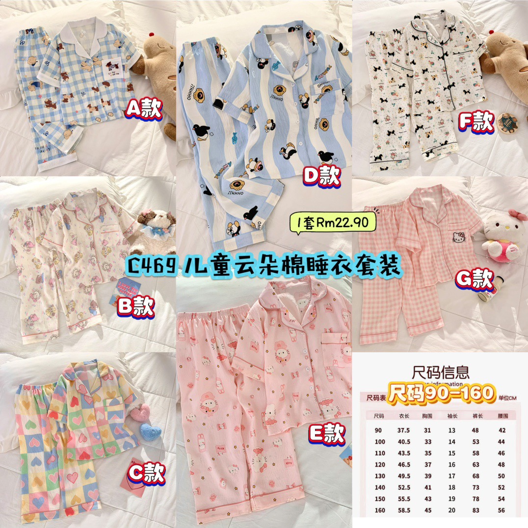 C469 儿童云朵棉睡衣套装 **A