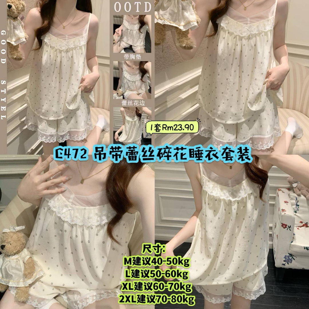 Be the first to review “C472 吊带蕾丝碎花睡衣套装” Cancel reply