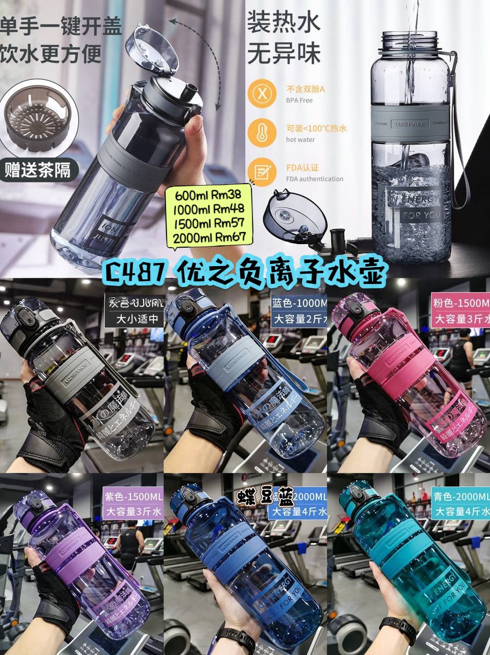 这款负离子水壶人人都懂!适合学生上学使用的水杯,户外运动健身旅行都可以使用,进口Tritan 材质,耐温高,无异味,防漏耐摔🌟