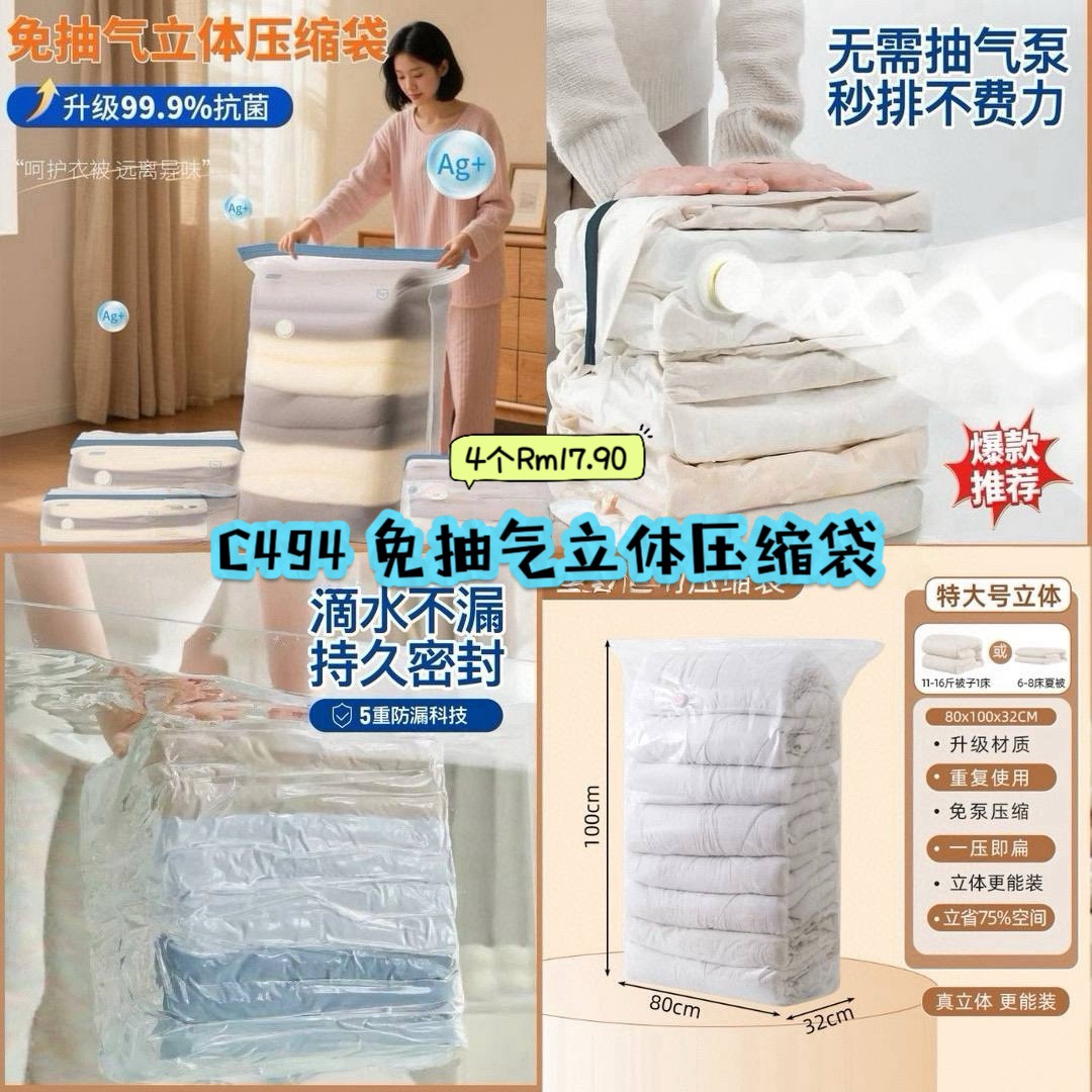 收纳衣服或棉被就用这款立体式的这款压缩收纳袋,免抽气的,直接按压就可以排出空气