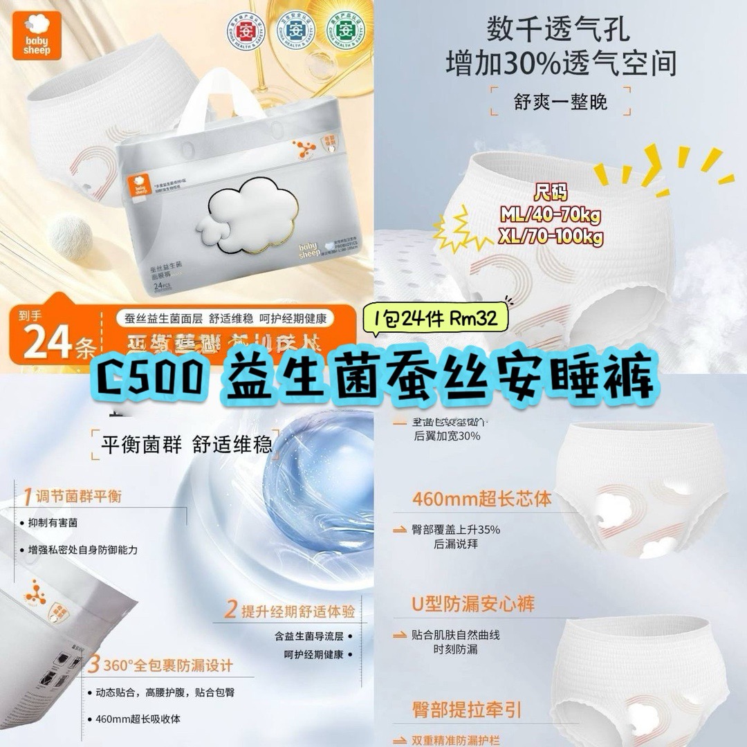 C500 益生菌蚕丝安睡裤 (1包24件)
