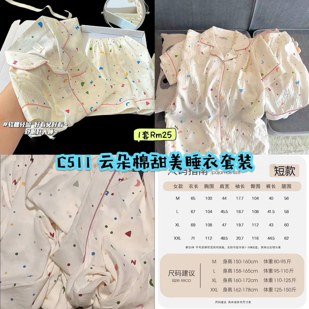 C511 云朵棉睡衣短裤套装