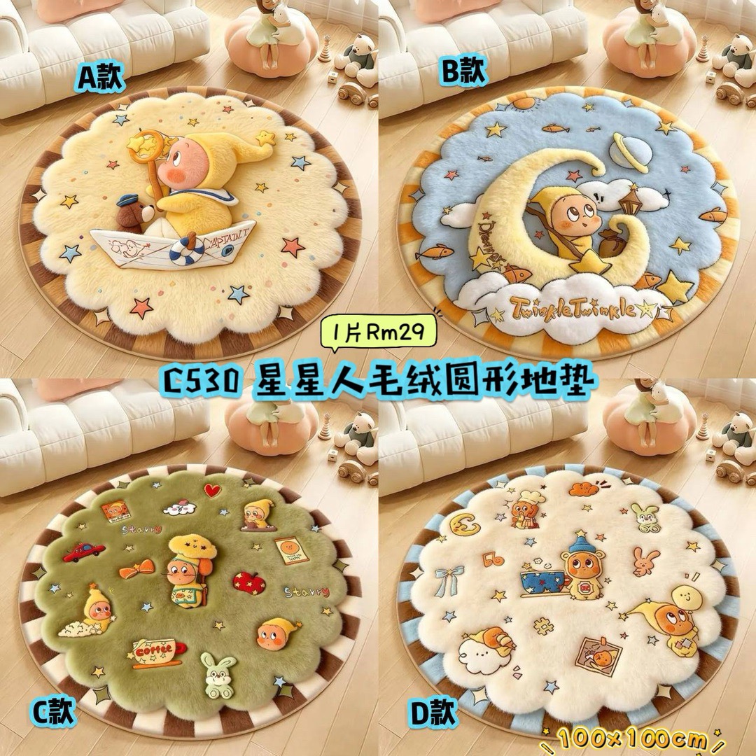 C530 星星人毛绒圆形地垫