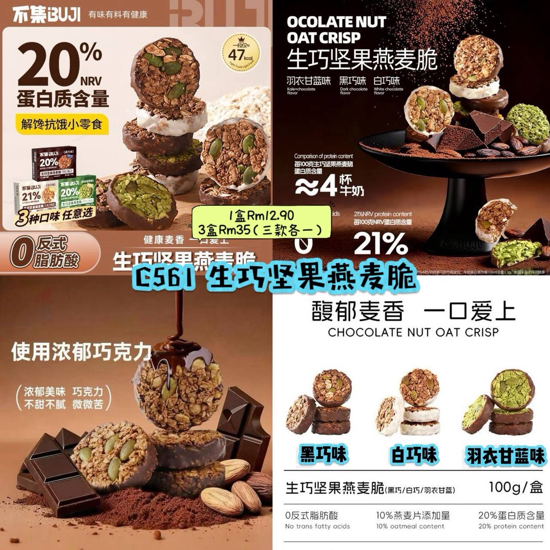 C561 生巧坚果燕麦脆(3盒=黑巧+白巧+羽衣甘蓝)