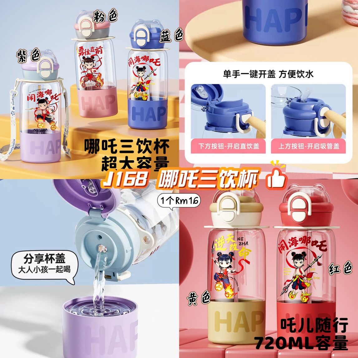 哪个小朋友能拒绝这么酷的哪吒水杯 720毫升大容量,满足孩子日常饮水量,一杯三饮设计,想怎么喝就怎么喝