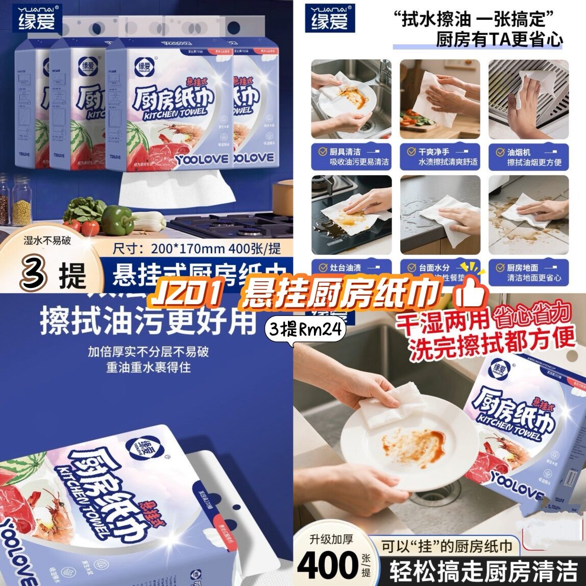 J201 厨房悬挂纸巾 (3提)
