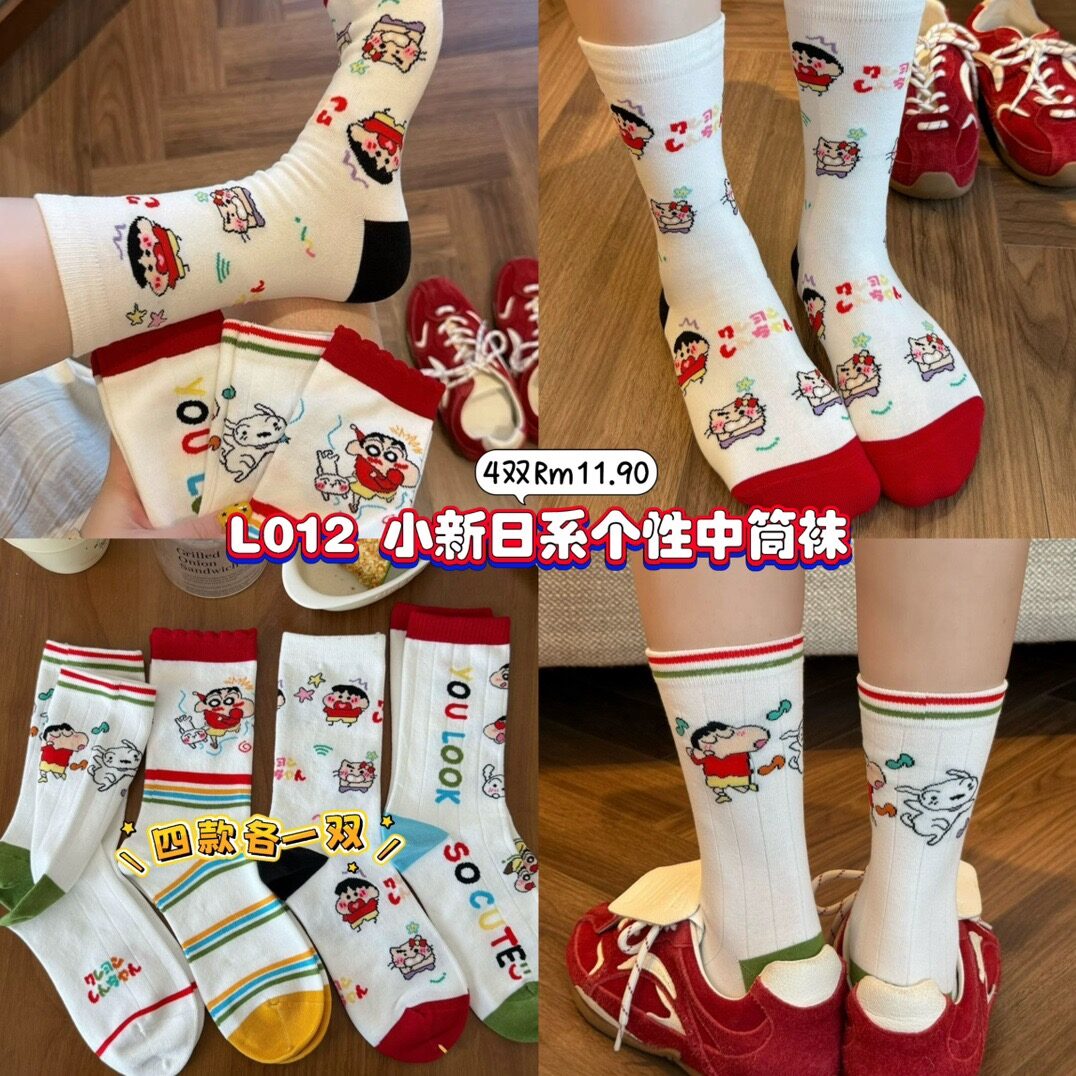L012 小新日系个性中筒袜 (4款格1)
