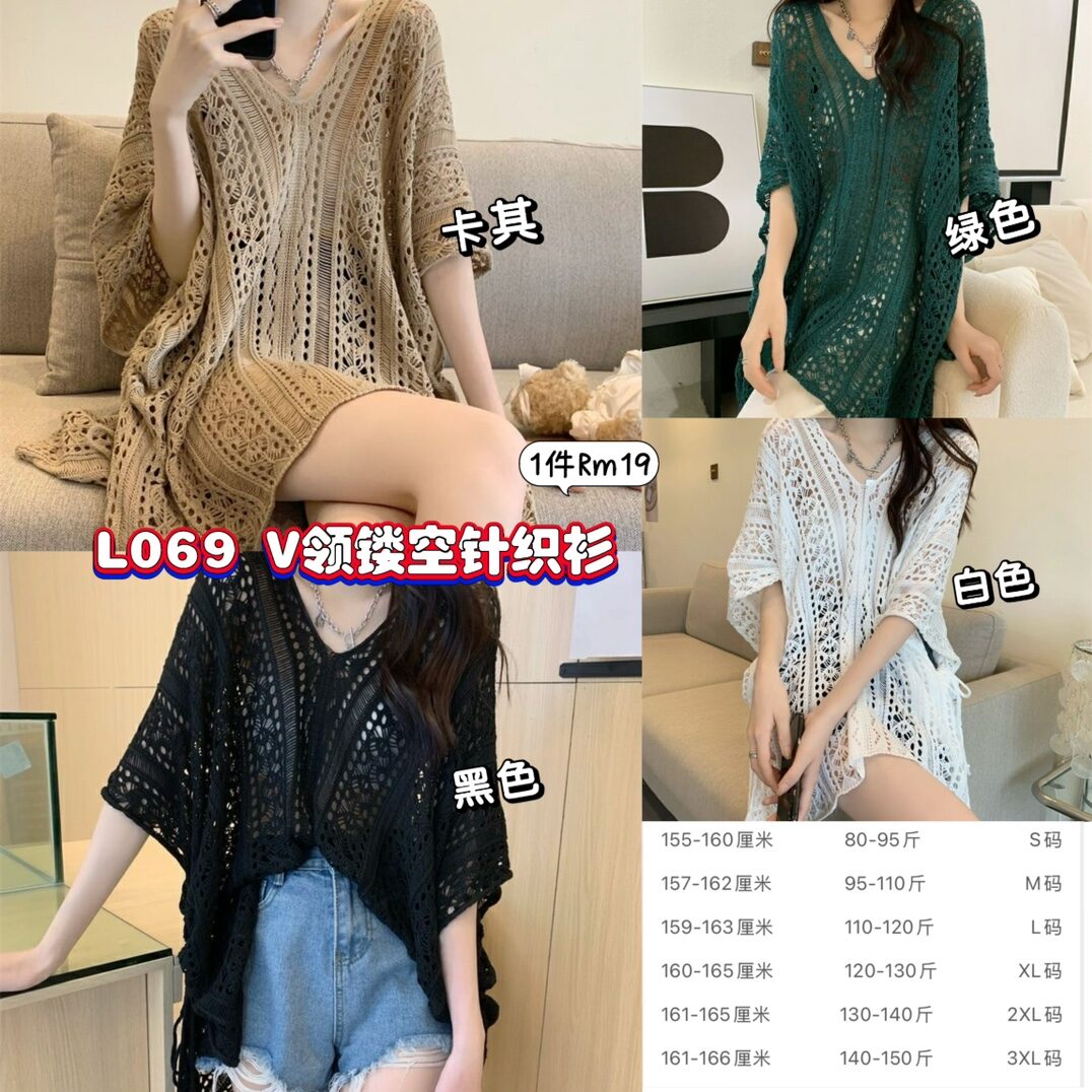 L069 V领镂空针织衫