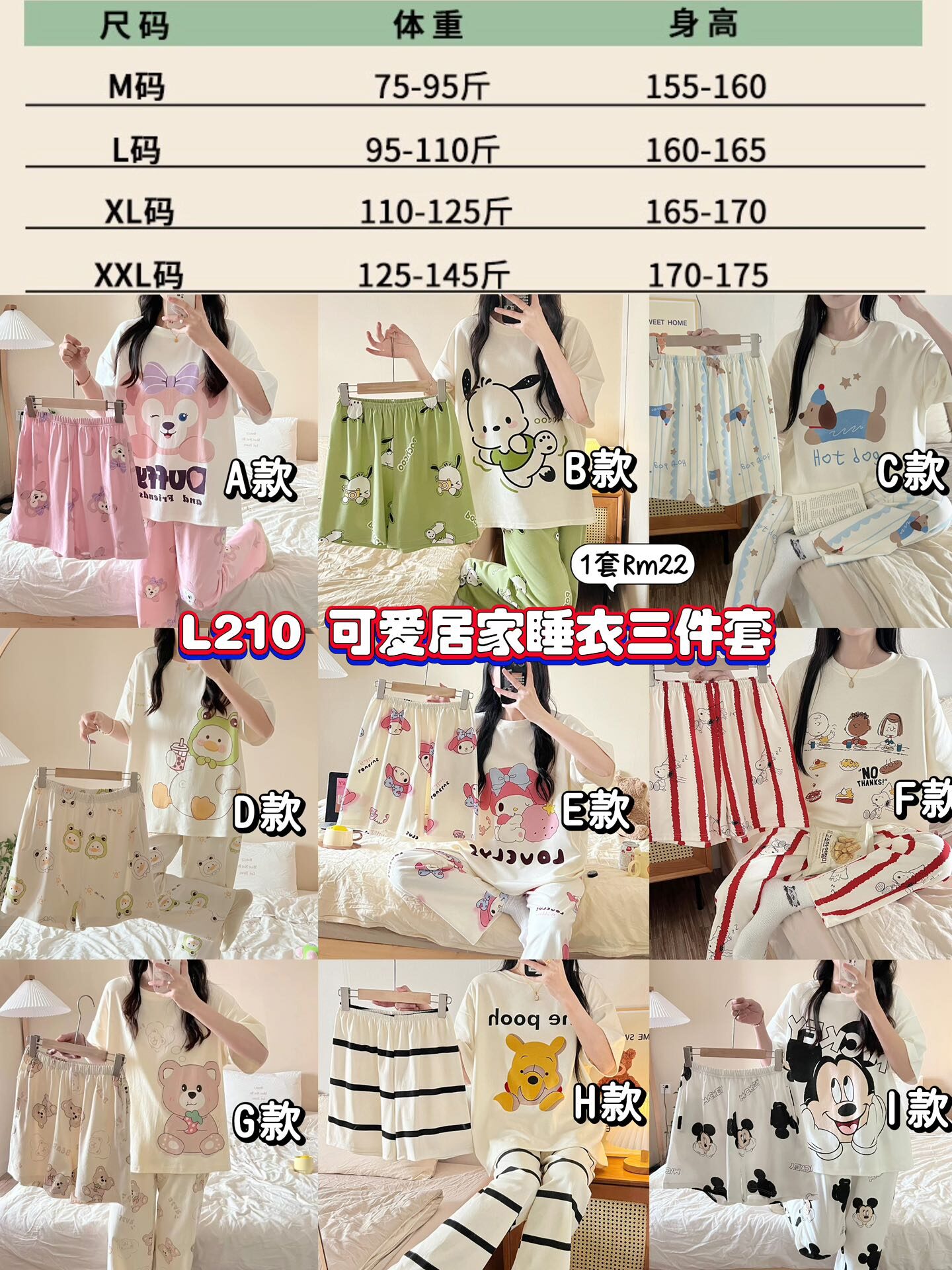 L210 可爱居家睡衣三件套 *B