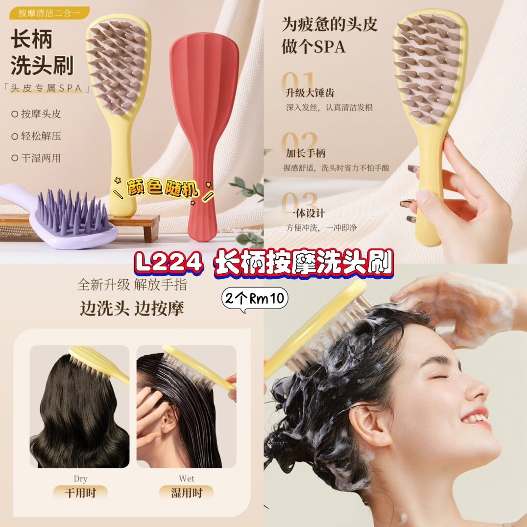 L224 长柄按摩洗头刷 (2个) *颜色随机